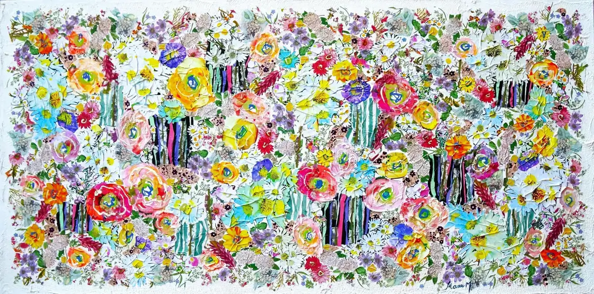 Manuela Moldovan "Walking in the Wildflowers Garden" 24" x 48", Mixed Media